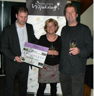gewonnen naar Ch�teau Val Joanis in Namens de Nederlandse Wijnkring overhandigde Jeroen Stuivenberg de cheque (in groot formaat).